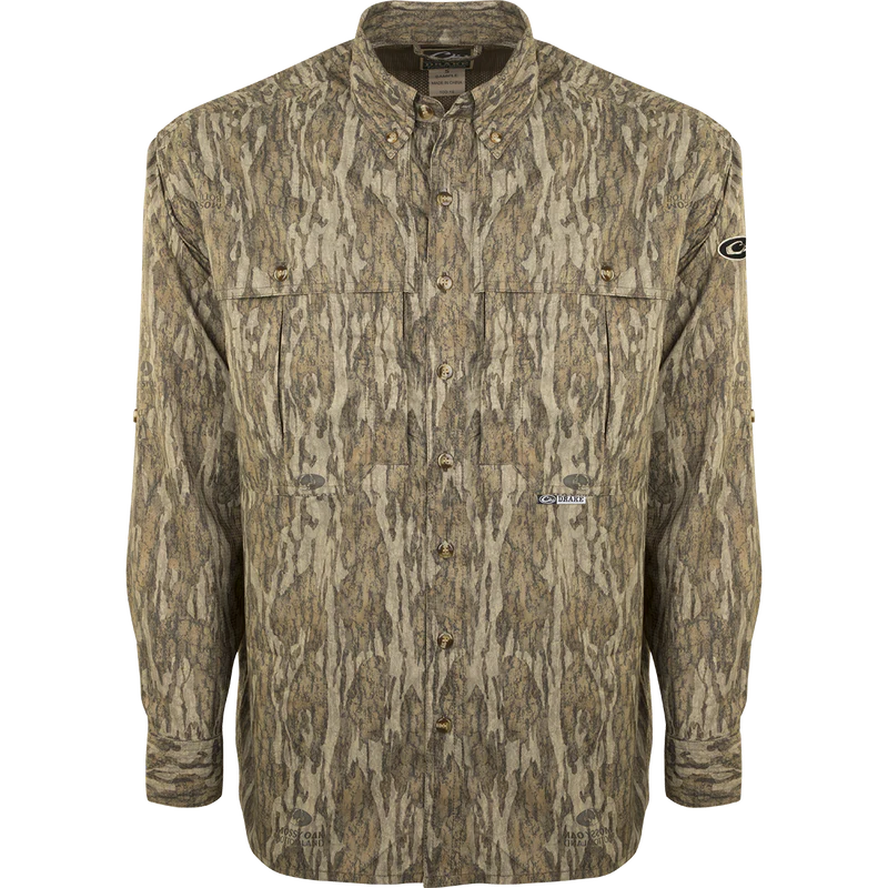 The Flyweight Wingshooter's Long Sleeve Shirt is our lightest and most breathable Early Season hunting shirt, great for dove season and early goose or teal season. An ultra-lightweight 100% polyester construction is designed to dry quickly and wick moisture away from the body. It also contains Sol-Shield™ UPF 50+ sun protection, a vented mesh back, a vertical Magnattach™ chest pocket & a vertical chest pocket.