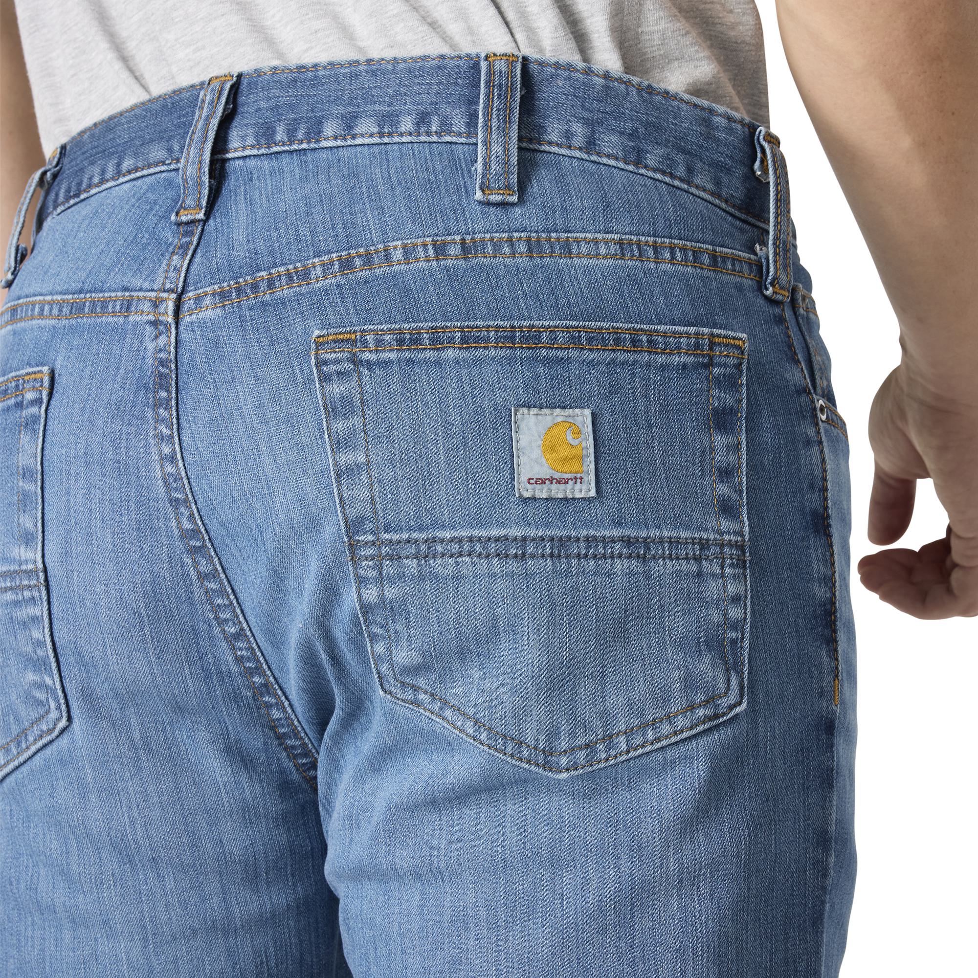 Long hitches or 14-hour days. These men's jeans can stand up to almost anything. They're made of our most durable, abrasion-resistant denim with enough stretch for easy movement. They're cut with a slim seat and thigh and have a tapered leg.