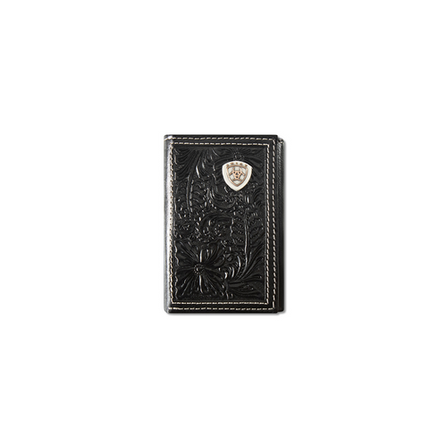 M&F Western 3D Men's Rug Fabric Tooled Black Bifold Wallet