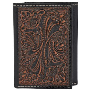 Tony Lama Men's Dark Brown Contrast Tooling Trifold Wallet