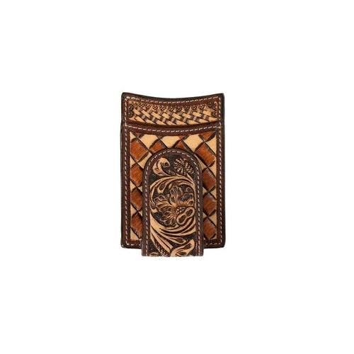Nocona Men's Western Red Floral Inlay Magnet Money Clip Wallet