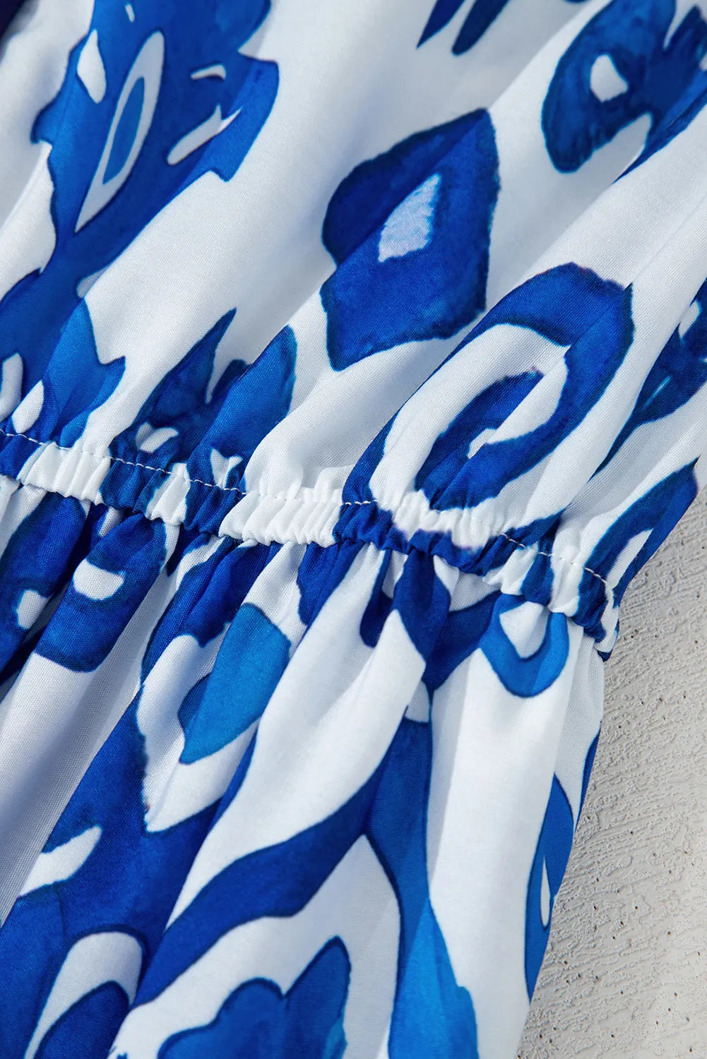 Blue Floral Puff Sleeve V-neck Maxi Dress
